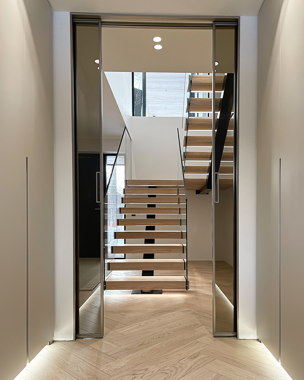 Suunnitteluvaiheessa huomioidaan VALO-portaiden erityispiirteet, kuten keskelle sijoitettava runkopalkki ja piilokiinnitykset. Tolpattoman lasikaiteen mitat on määriteltävä millintarkkuudella, koska lasia ei voida muokata asennuksen aikana.