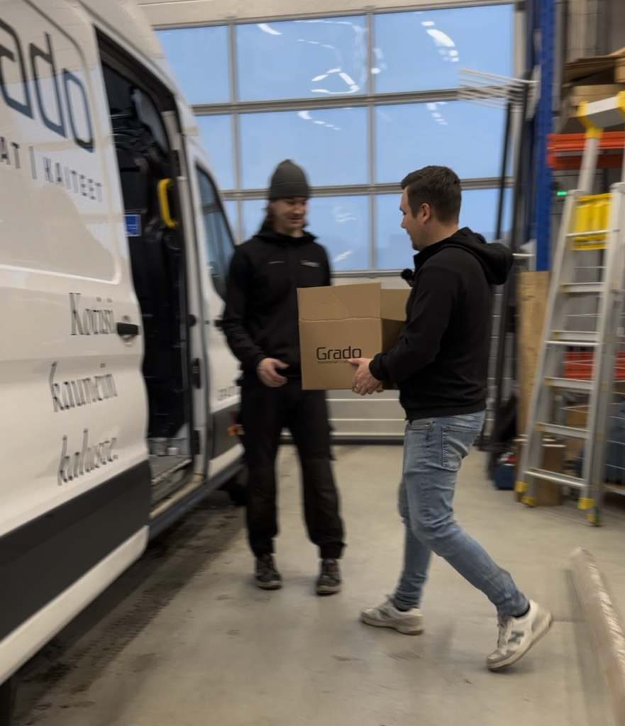 Valmiina Gradon portaat näyttävät tyylikkään minimalistisilta. Niiden eteen tehdäänkin paljon työtä joka päivä. Gradolla tehtaan arkea johtaa tuotantojohtajamme Matti. Hän varmistaa, että oikeat ihmiset tekevät oikeita hommia oikeaan aikaan – turvallisesti ja ammattitaidolla.